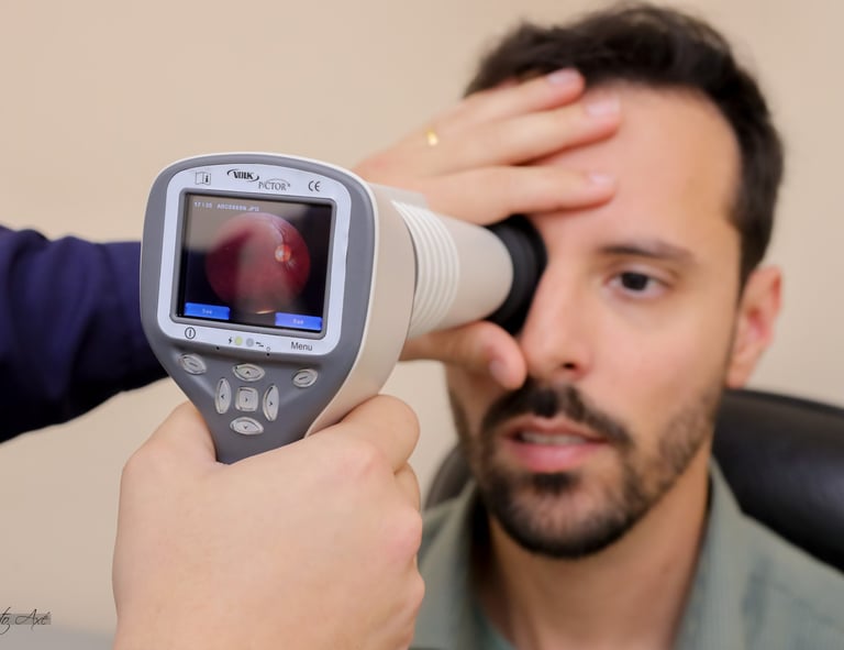 Retinografia é um exame fotográfico do fundo do olho, usado para registrar e acompanhar alterações na retina e no nervo óptico.