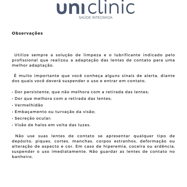 Orientações sobre uso das Lentes de contato Gelatinosas
