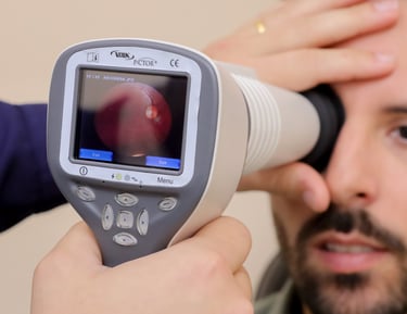 Retinografia é um exame fotográfico do fundo do olho, usado para registrar e acompanhar alterações na retina e no nervo óptico.